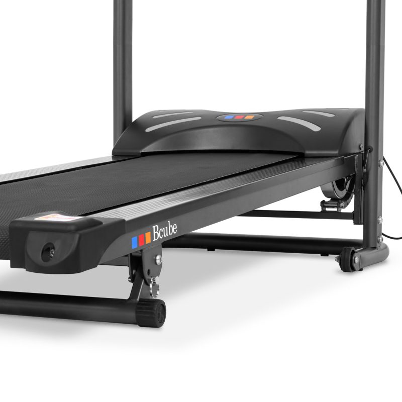 Il Bcube MQ80 è un tapis roulant magnetico progettato per chi desidera allenarsi in modo semplice e silenzioso all’interno della propria casa. Grazie alla sua struttura compatta e richiudibile, si adatta perfettamente anche agli spazi più piccoli, senza rinunciare a funzionalità essenziali. Il sistema di resistenza magnetica offre 8 livelli di sforzo regolabili manualmente, permettendo di personalizzare l’intensità dell’allenamento in base alle proprie esigenze. L’inclinazione del piano di corsa è regolabile su tre livelli, utile per simulare percorsi in salita e aumentare l’efficacia dell’allenamento. Il display LCD mostra in tempo reale i dati fondamentali come tempo, velocità, distanza, calorie bruciate e frequenza cardiaca, rilevata tramite i sensori palmari. Con una portata massima di 110 kg e una struttura leggera ma solida, il MQ80 rappresenta una scelta ideale per chi cerca praticità, funzionalità e qualità.