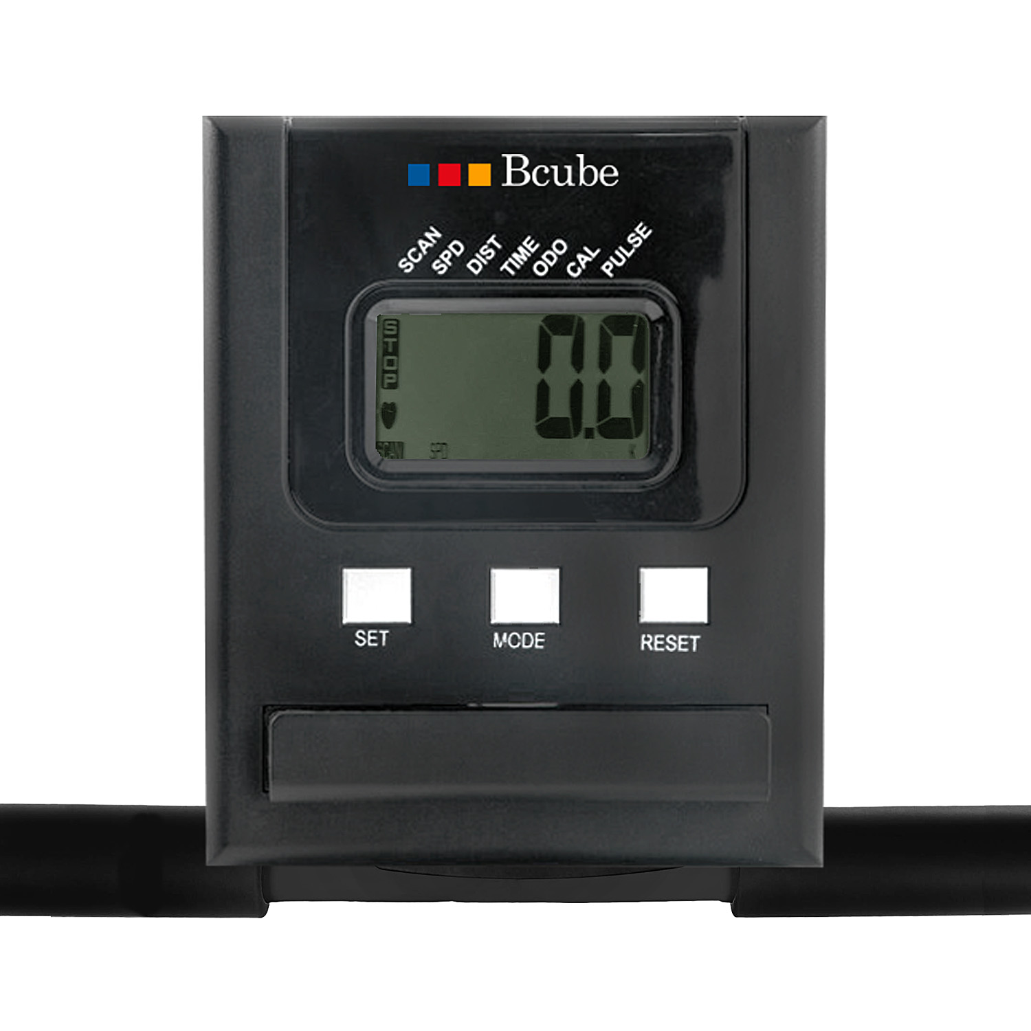 Il display LCD mostra in tempo reale i dati principali: tempo, velocità, calorie, distanza e frequenza cardiaca. I sensori Hand Pulse sul manubrio consentono di monitorare facilmente il battito, garantendo un allenamento sicuro e controllato.